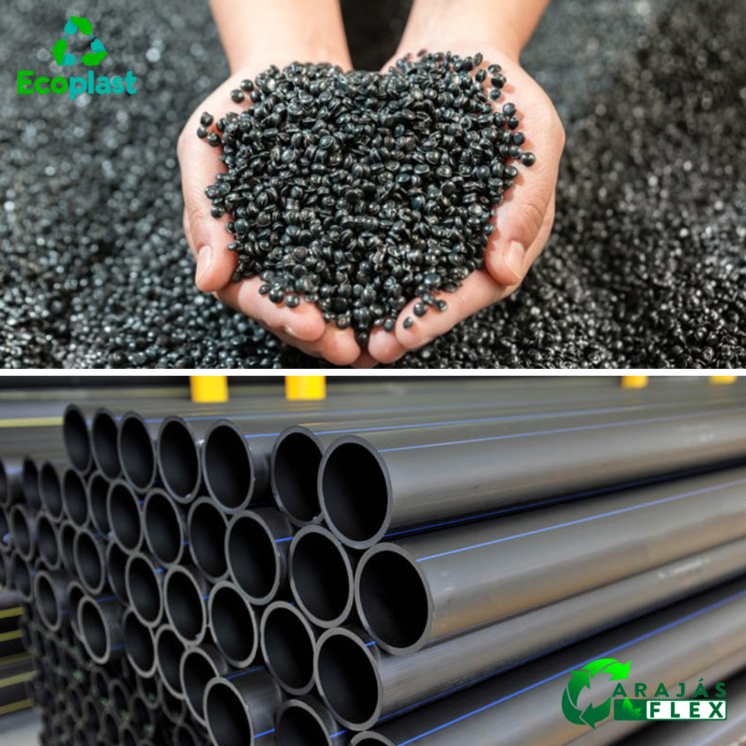 Esse material reciclado é então destinado à Carajás Flex, empresa do mesmo grupo, que utiliza os grãos de polietileno como matéria-prima na fabricação de mangueiras e tubos de polietileno. Essa integração entre as duas empresas garante maior controle sobre todo o processo produtivo, desde a reciclagem até o produto final.